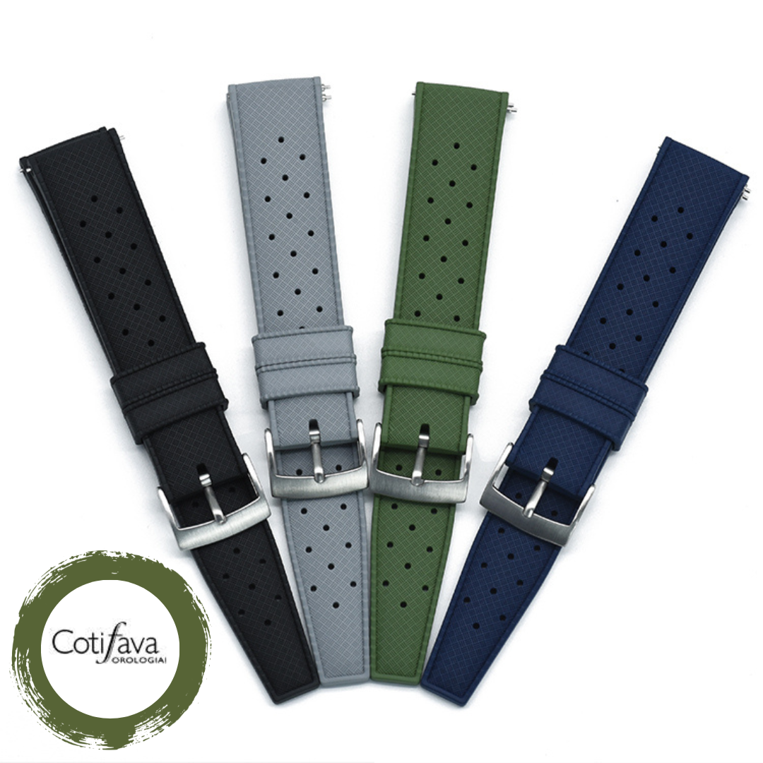 I cinturini rappresentano uno degli elementi distintivi degli orologi da polso: è grazie alla loro colorazione, al loro materiale, al loro stile che un determinato esemplare può assumere un carattere preciso, e lanciare un messaggio determinato. Cotifava Orologiai offre cinturini realizzati in maniera artigianale di ogni materiale, dalla pelle alla gomma, all'acciaio, traspiranti e sportivi